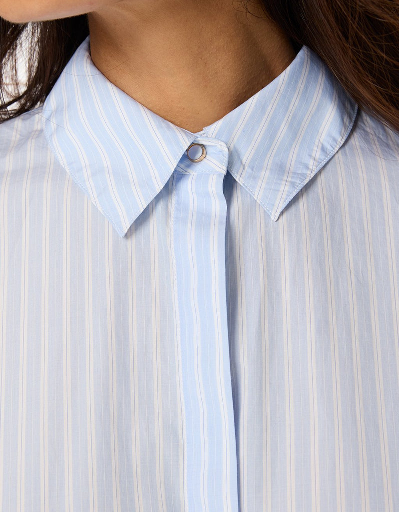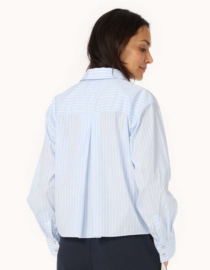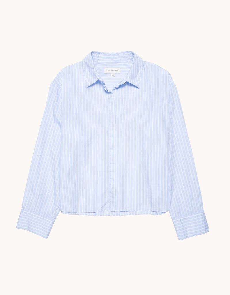 A new take on an icon, our Mini Boyfriend Shirt borrows tailored touches from your boyfriend's closet, with a boxy fit and abbreviated length. We designed it with a covered placket and Italian gold-tone shell buttons on the cuffs and collar.