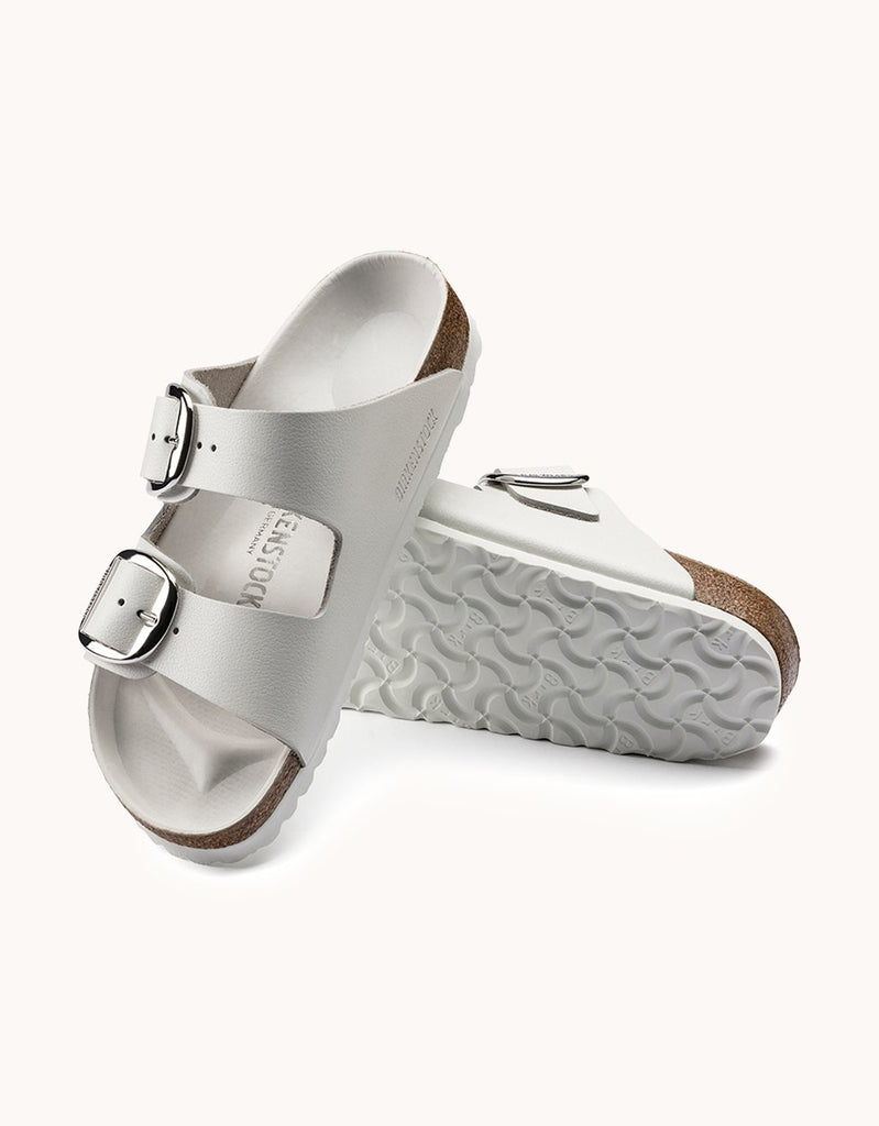 birkenstock's arizona sandal is an iconic style, designed with exaggerated buckles and comfortable, anatomically-shaped leather footbeds.