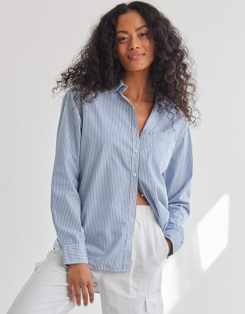 This is my new go to shirt! Great fit. Perfect fabric. Classic stripe: goes with everything. Throw on for instant chic!