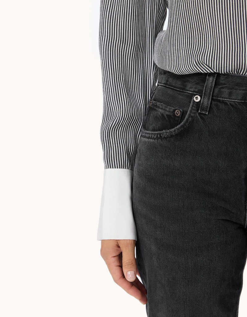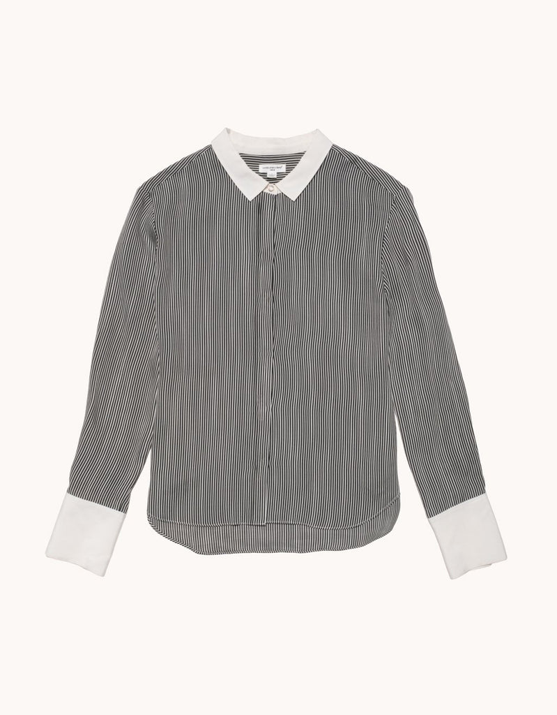 The ultimate classic. This button-down shirt is crafted from a soft, luxe blend of silk and viscose. We designed with contrasting cuffs and a covered placket for a sleek finish.