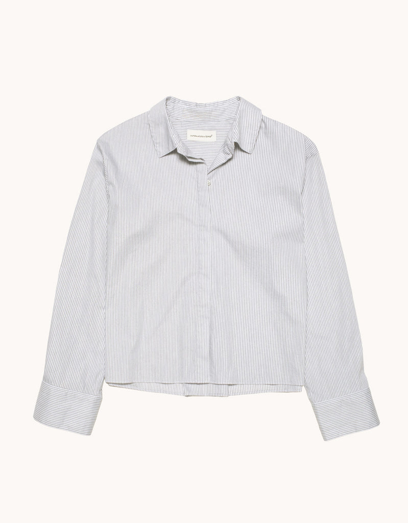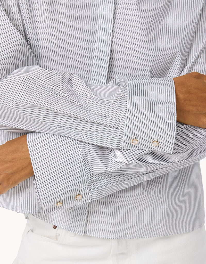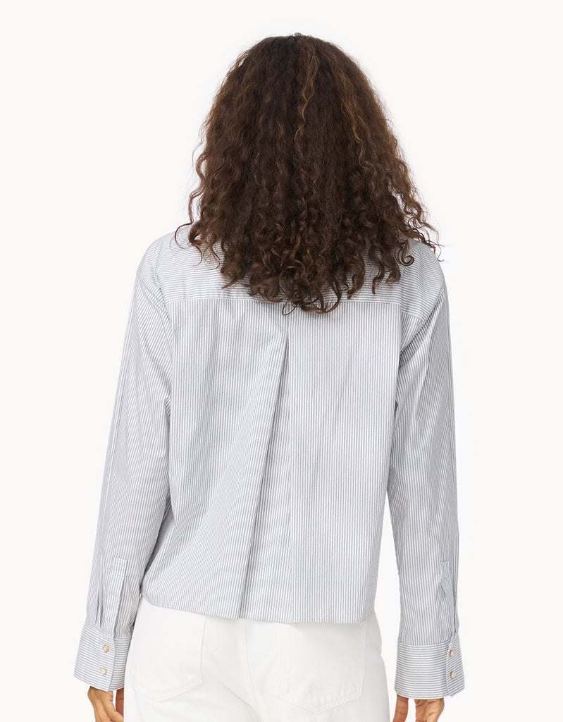 A new take on an icon, our Mini Boyfriend Shirt borrows tailored touches from your boyfriend's closet, with a boxy fit and abbreviated length. We designed it from Italian poplin with shimmering stripes.