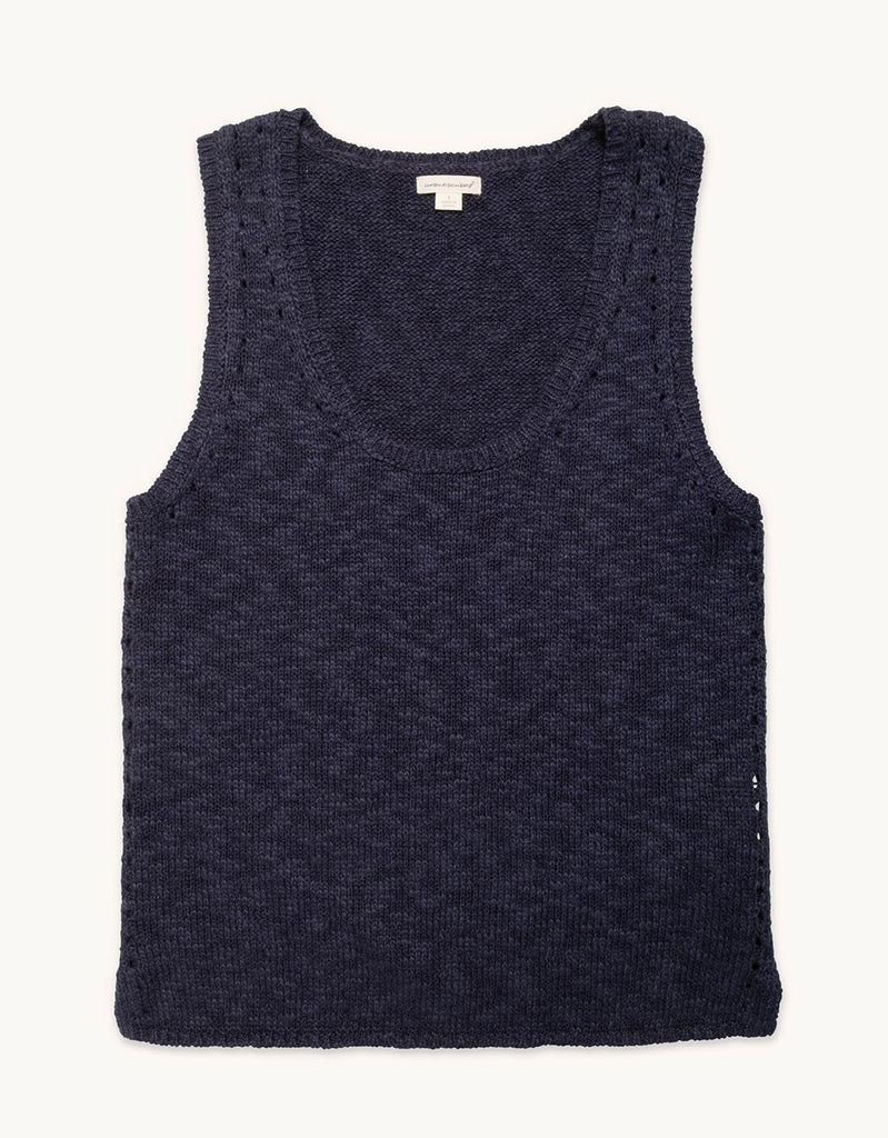 everything's easy in our knit tank. crafted from a breathable blend of linen and cotton, it layers effortlessly over swimwear or under a cardi.