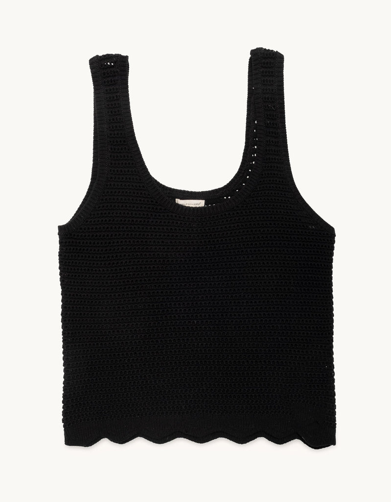 effortless and classic, this sweater tank is crafted from cotton with crochet-inspired stitching for a textured finish. the scalloped hem lends a vintage touch.