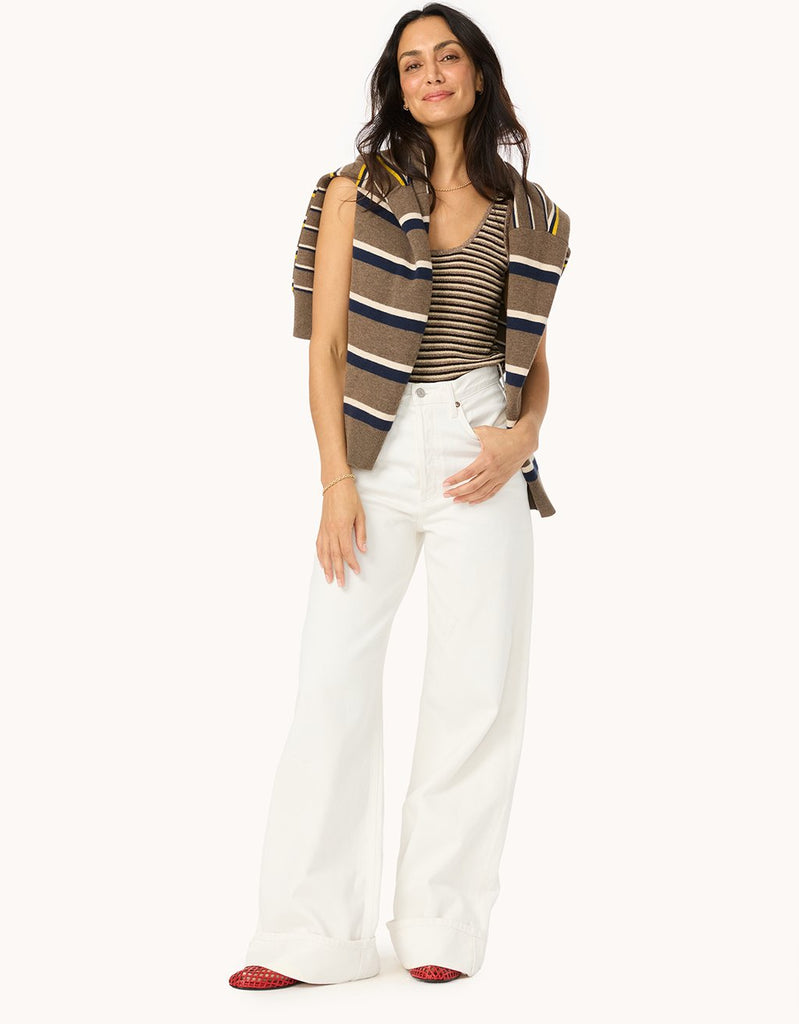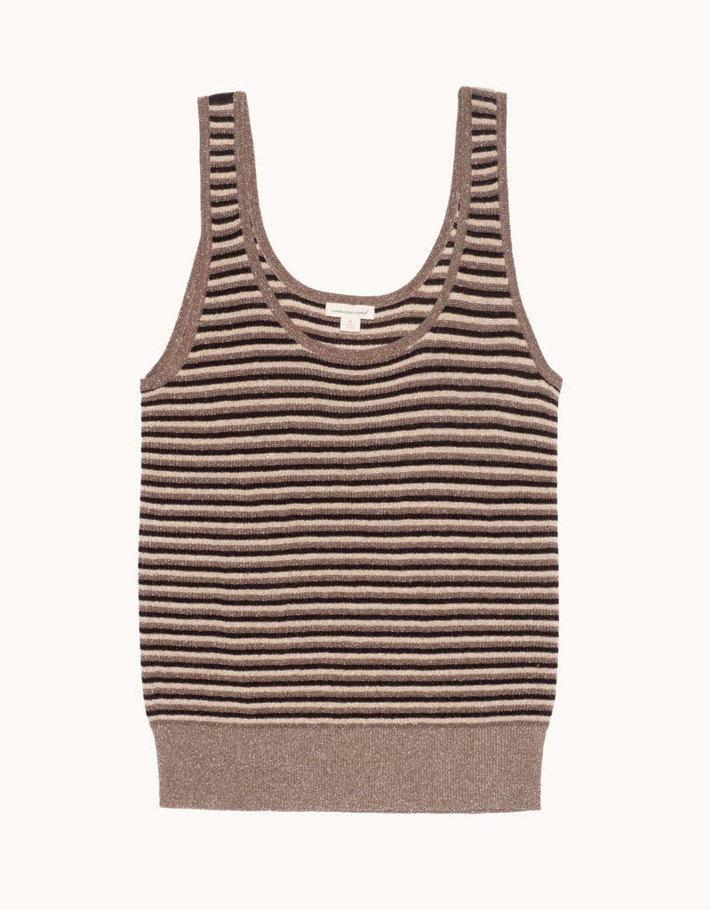 Elevate your knitwear. This all-year tank is knitted from Italian yarn with a subtle shimmer and timeless stripes.