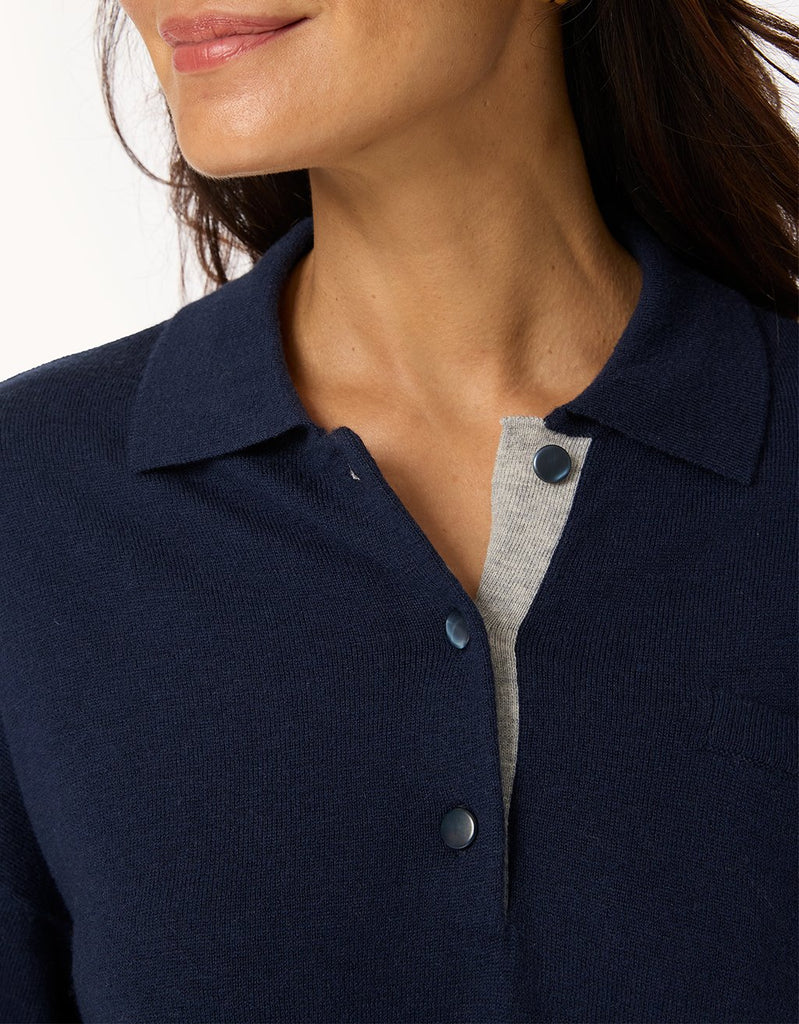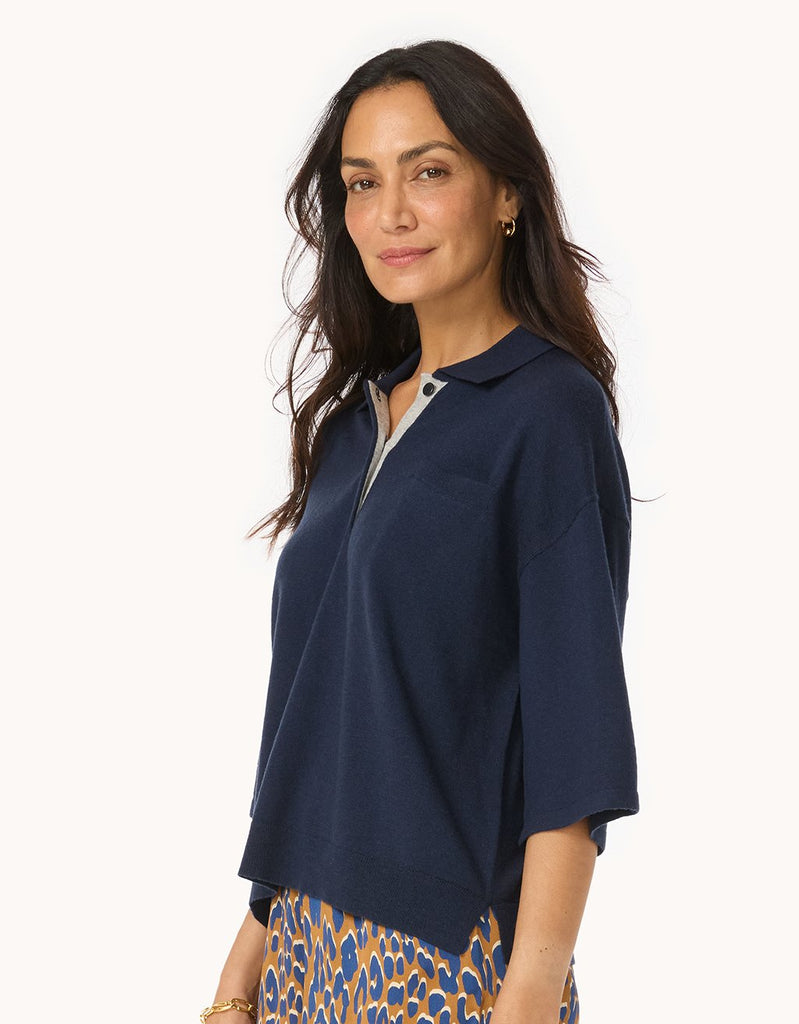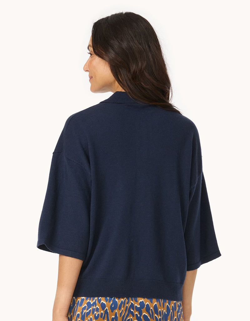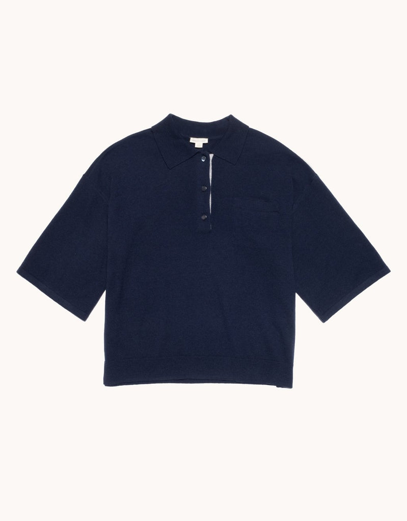 A fresh take on the quintessential polo. This short-sleeve sweater is crafted from luxuriously soft merino wool and cut for an easy, draped fit. We kept the placket bare for a clean finish.