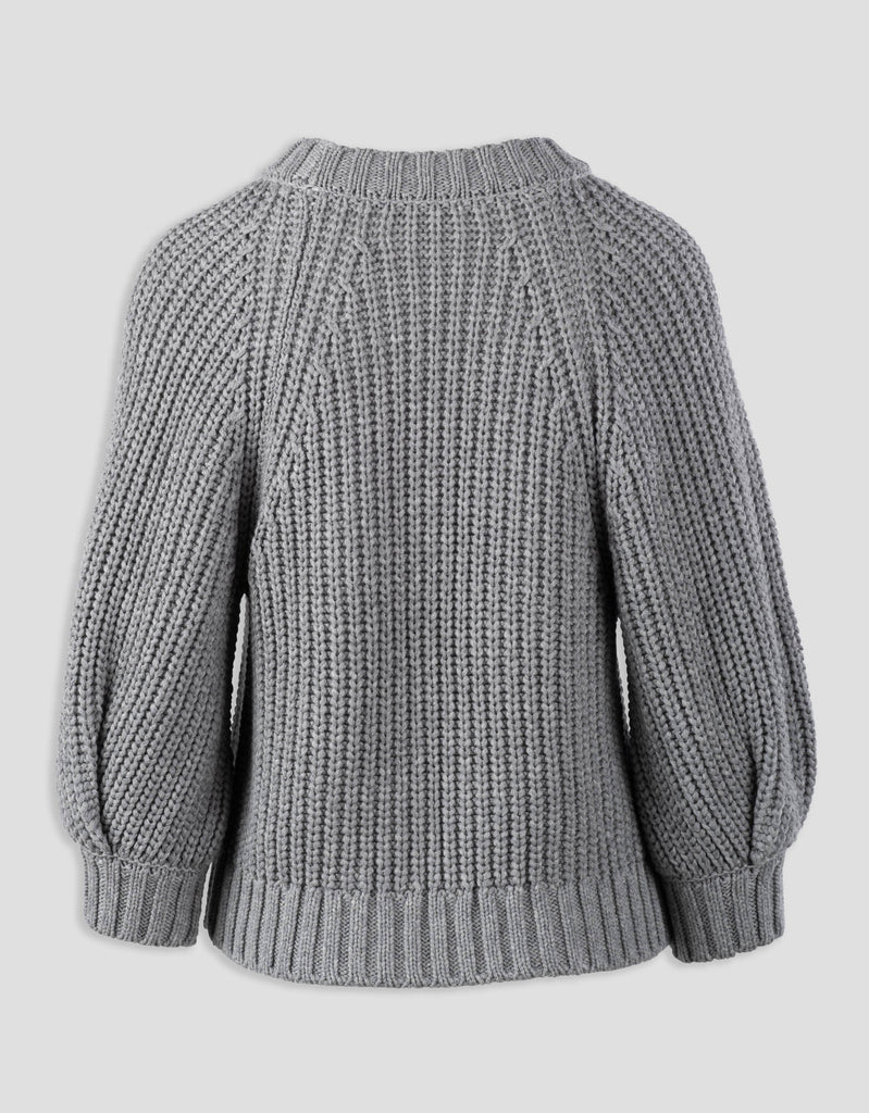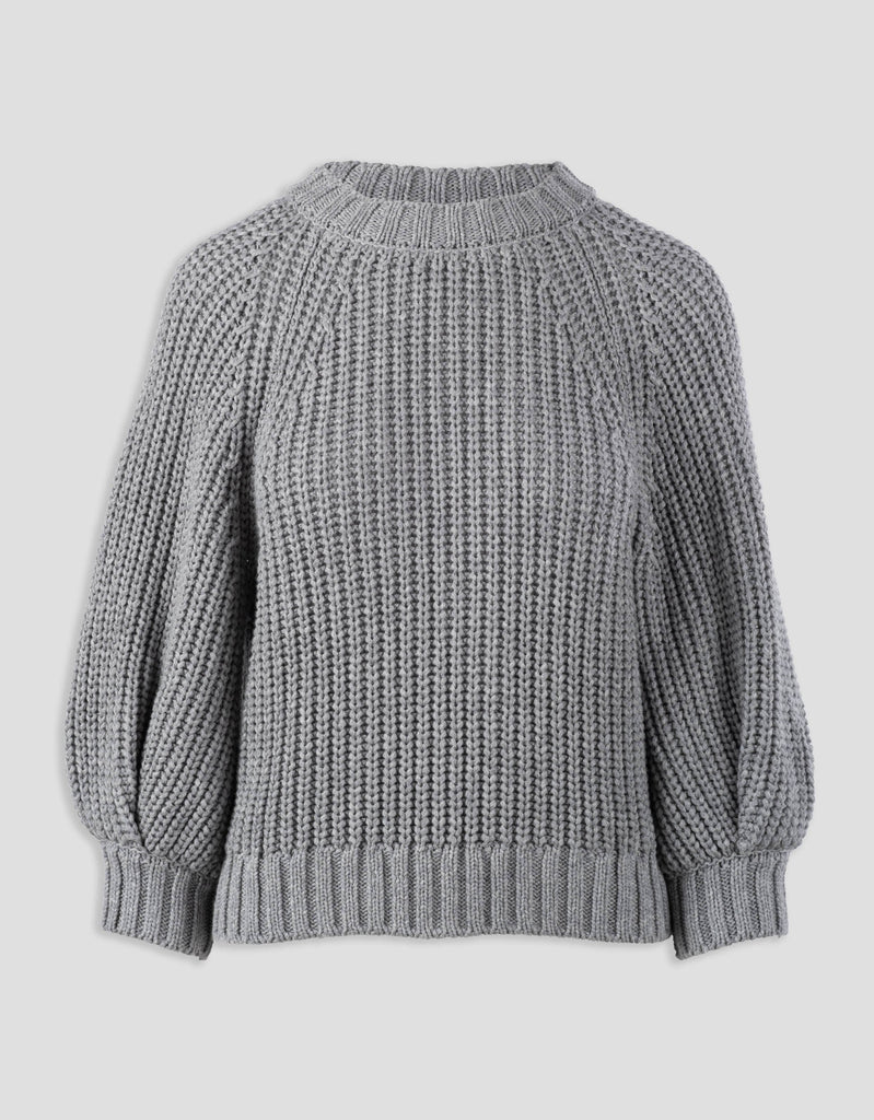 an cozy sweater made for jeans, silk skirts, and everything in between. knitted from a blend organic cotton and cashmere in chunky stitching, it's incredibly soft with a comfy feel. the puff-sleeve silhouette gives it a touch of volume.