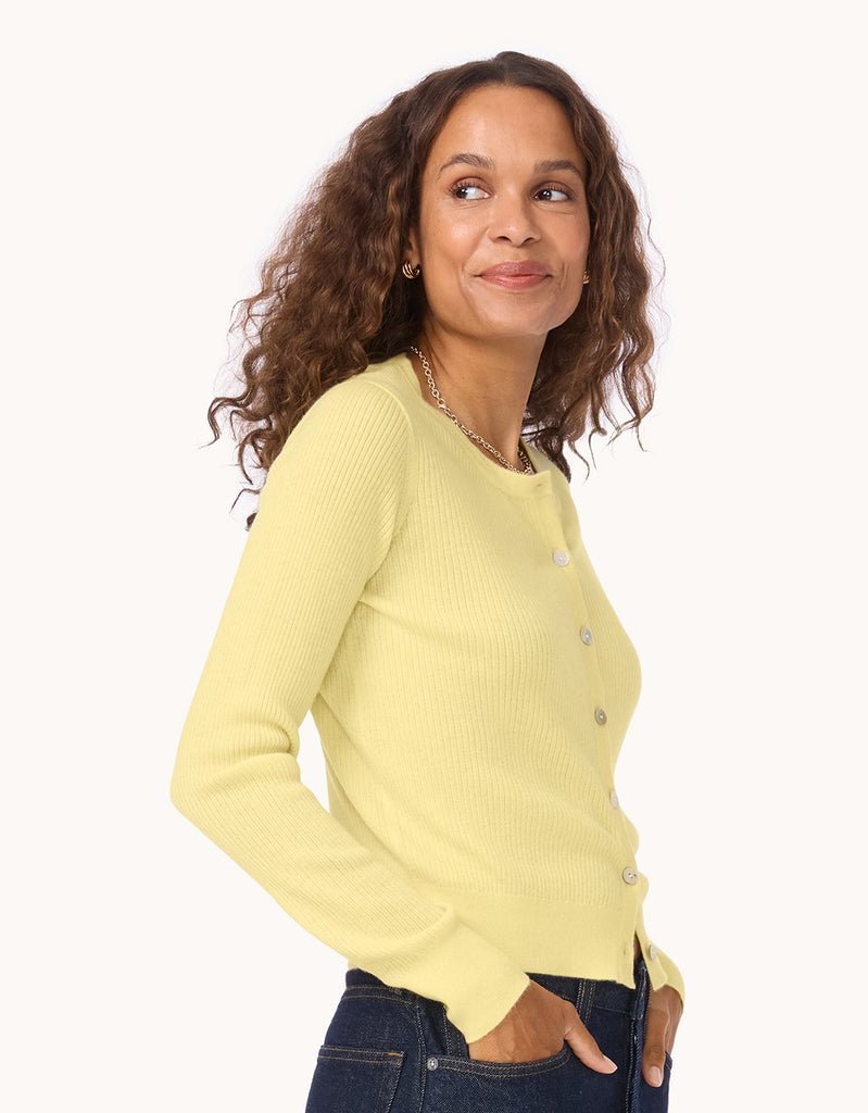 A layering staple you'll wear time and again. We designed this cardi with a lightweight construction and delicate ribbing, and functional mother-of-pearl buttons down the front.