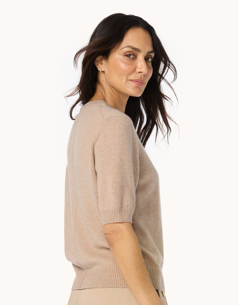 A luxe essential that stands the test of time. The cashmere tee brings together the easy fit of a classic tee with the soft feel of cashmere. It's cut for a relaxed fit with a slight drape. The crewneck, cuffs, and hem are ribbed.