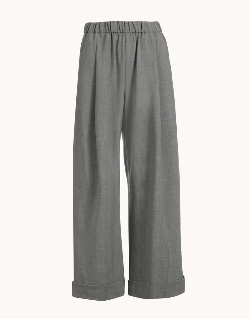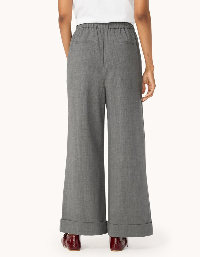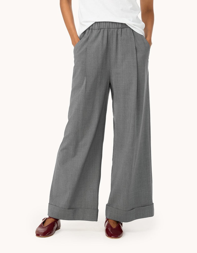 Tailoring, without the fuss. crafted from Italian merino wool, this suit pant is designed with an elasticated waist for the easiest fit. We designed it with pleats along the waistband and rolled hems. There are front slant pockets, as well as back welt pockets.