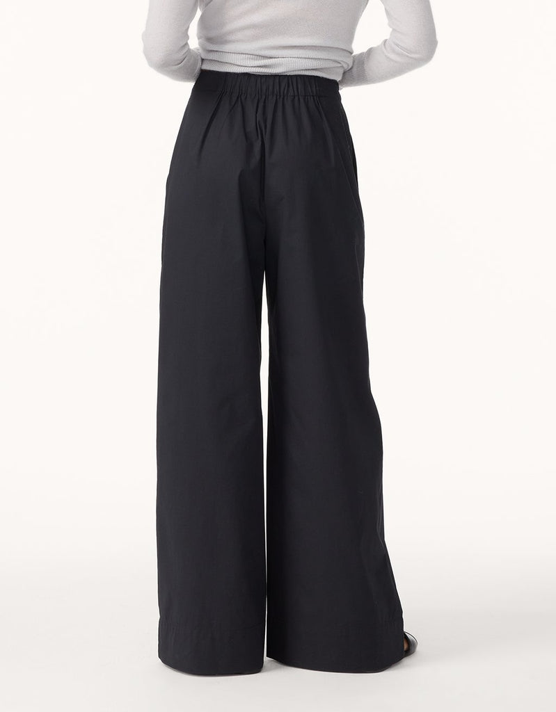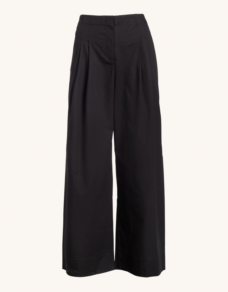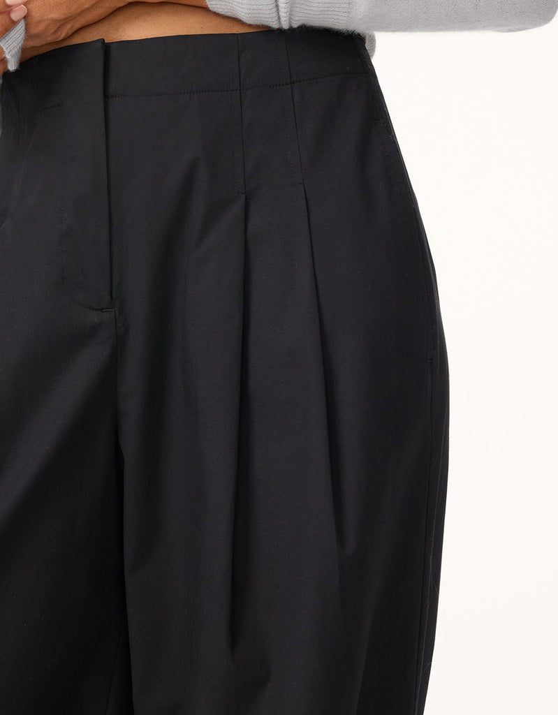 looks like tailoring, feels like luxury. we designed this trouser from portuguese cotton poplin, and cut it for a slightly wide-leg fit.