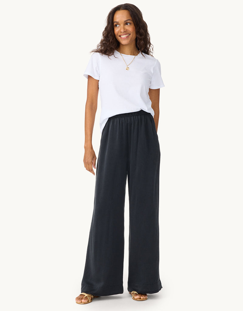 what looks elegant yet feels like loungewear? our silk wide leg pant.
