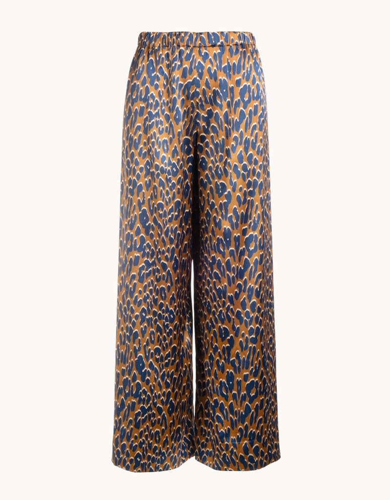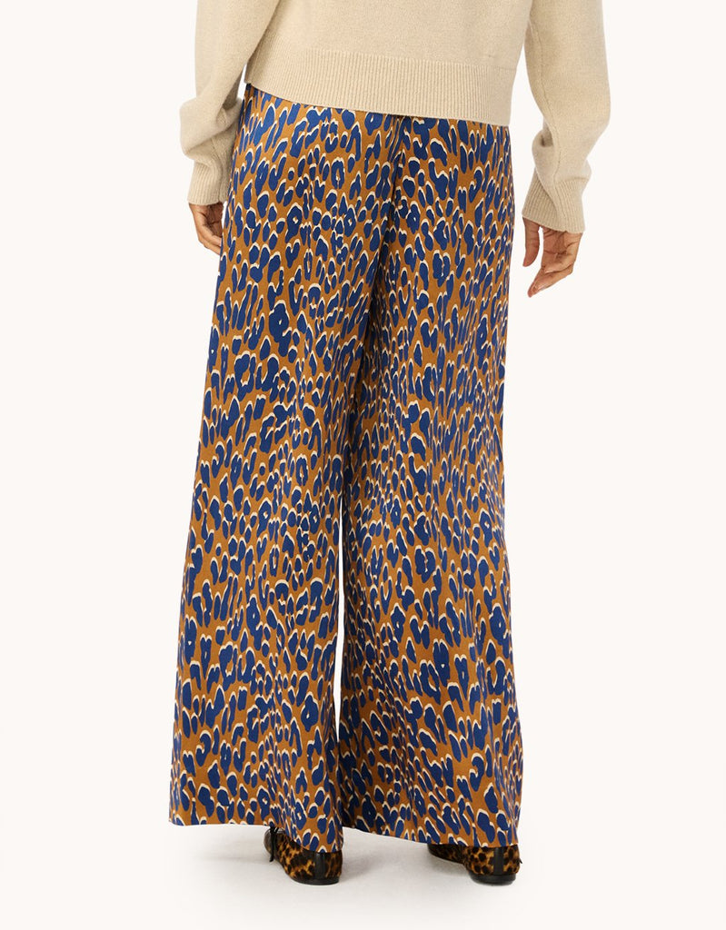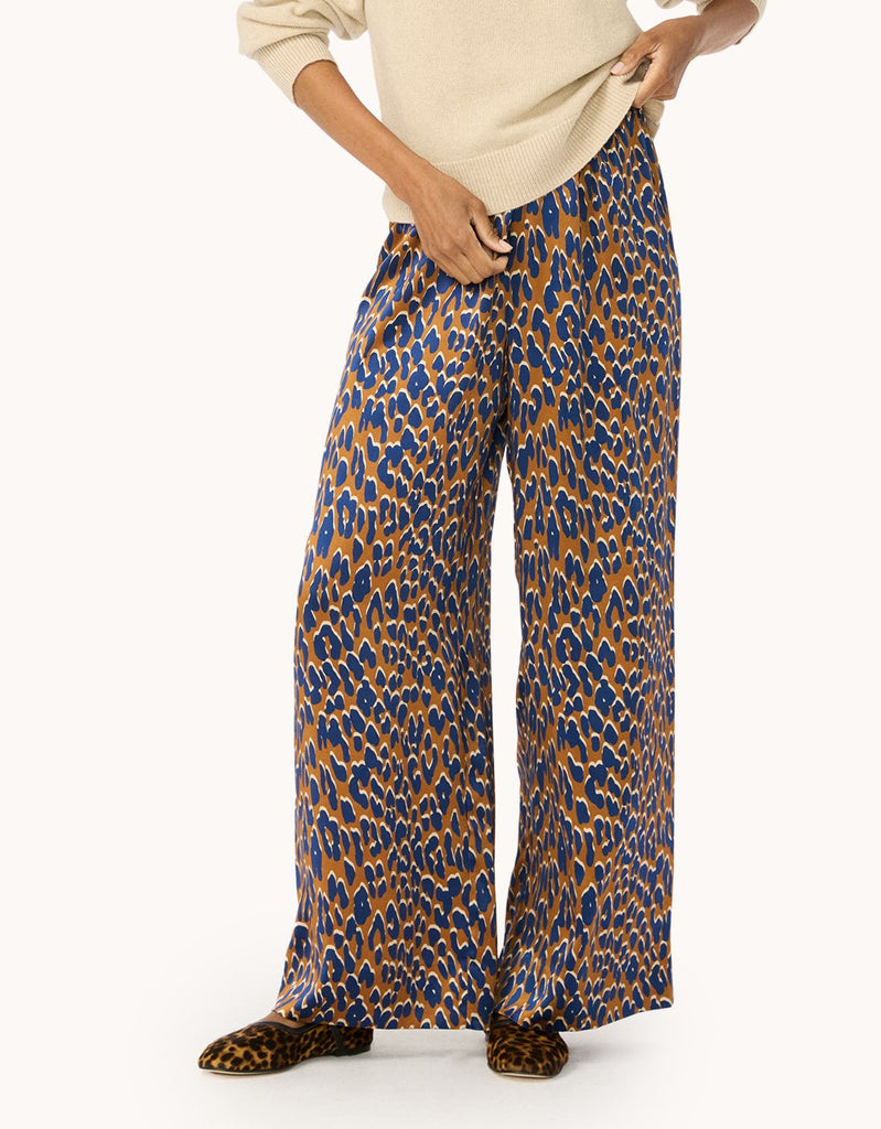 What looks elegant yet feels like loungewear? Our silk wide leg pant. We designed this style from double-faced silk that shows the modern leopard print on both sides. The seamless design lends a straighter fit across the hips, and ensures an uninterrupted print.