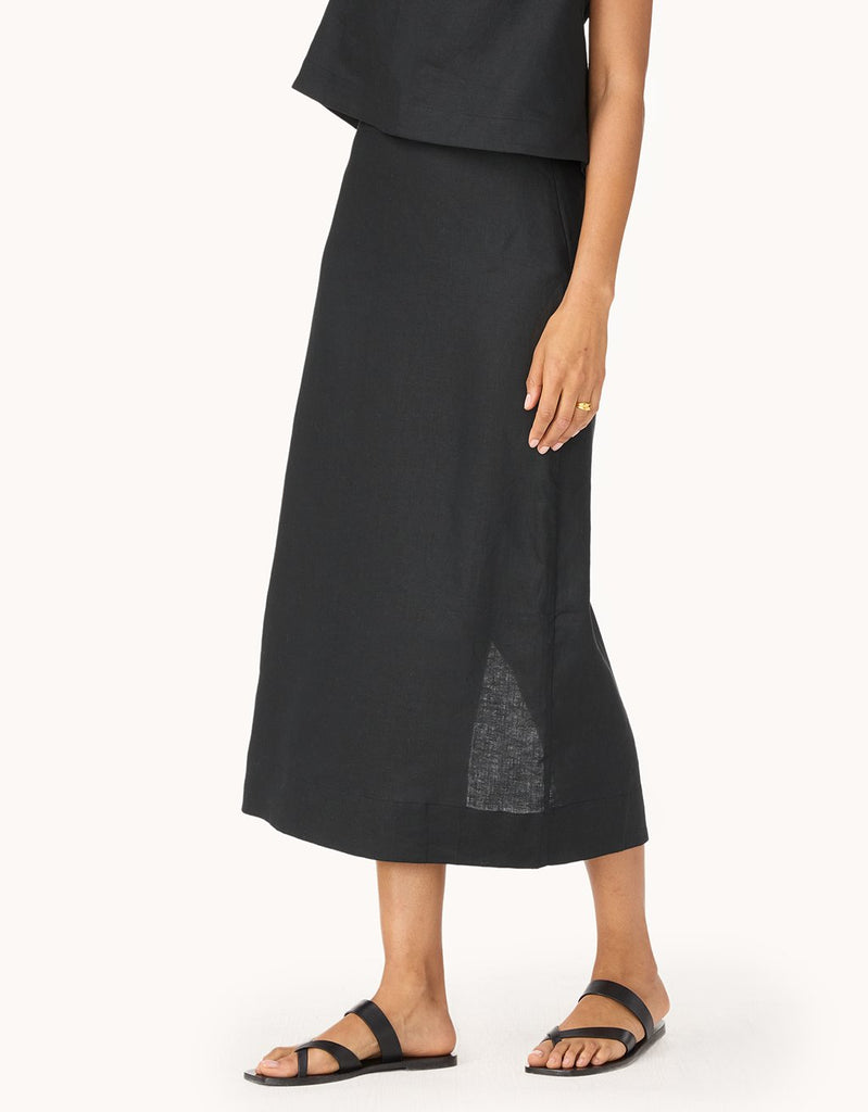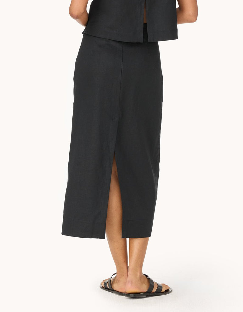 an effortless take on a staple. crafted from crisp, breathable linen, this pencil skirt is perfect for summer.