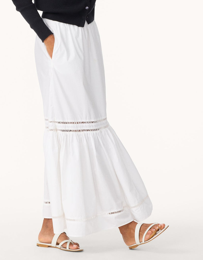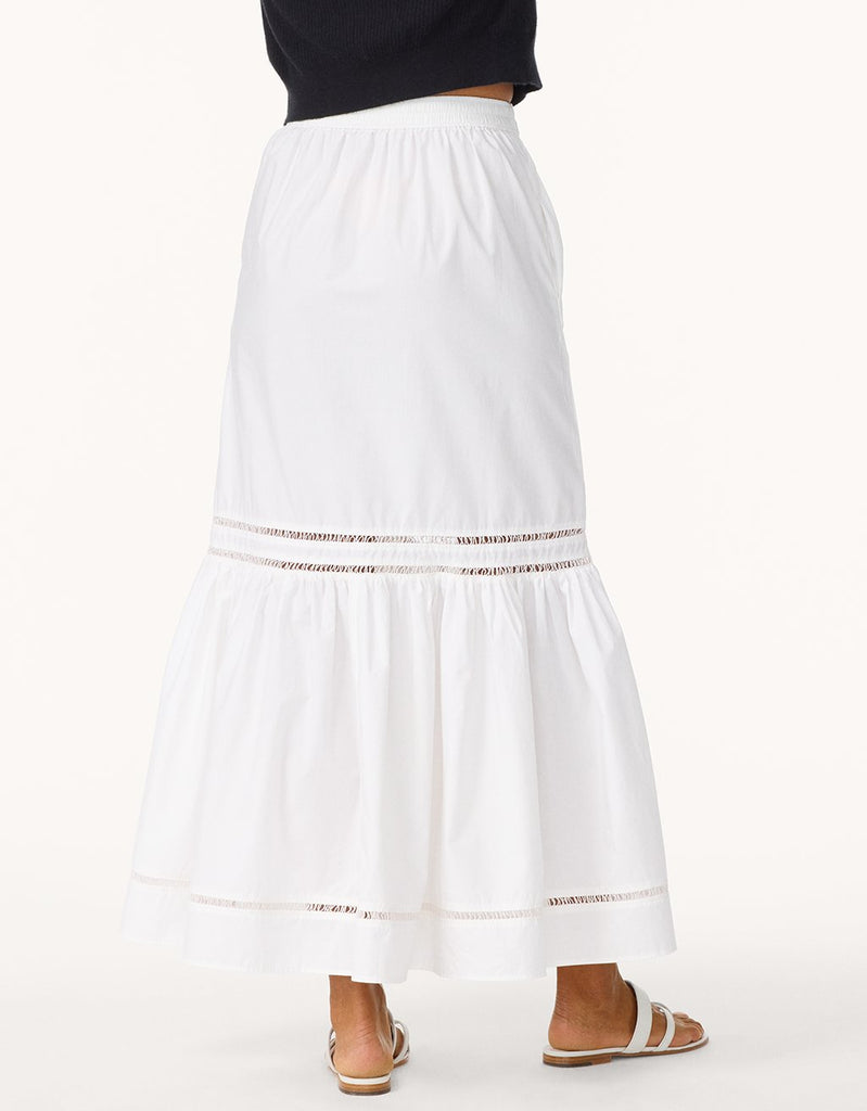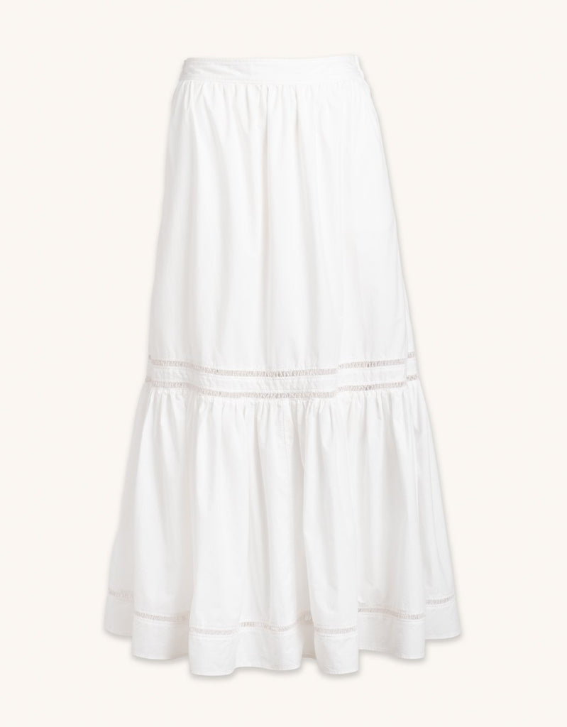the epitome of ease, our poplin skirt is designed in a timeless, a-line silhouette with a single shirred tier.