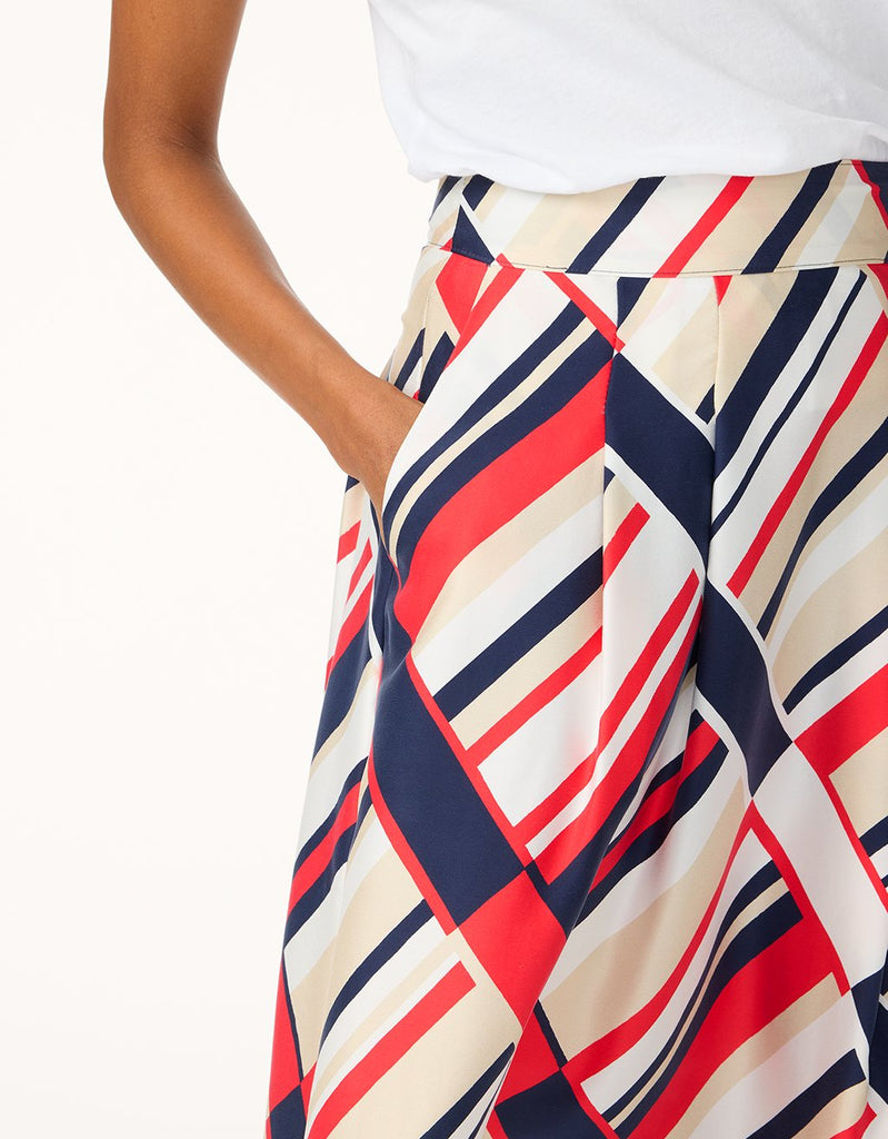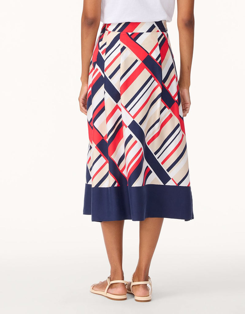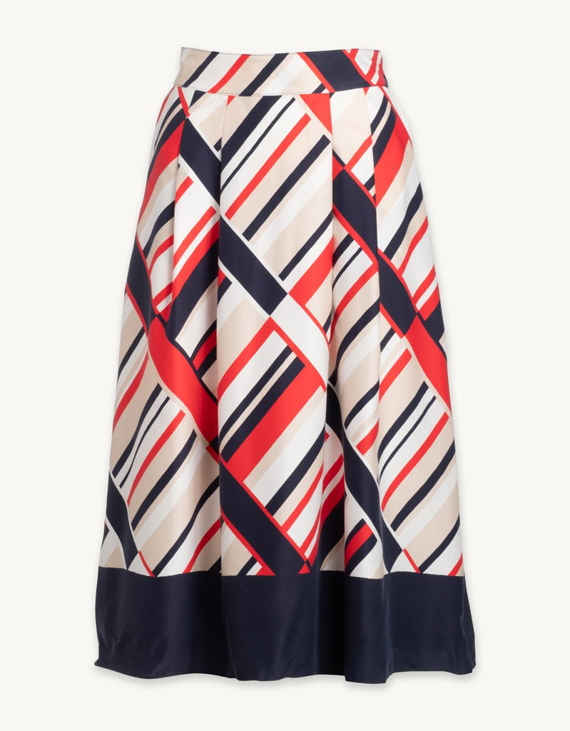 easy-wearing elegance. this silk skirt is designed in a statement print with a high waist and flowy fit.