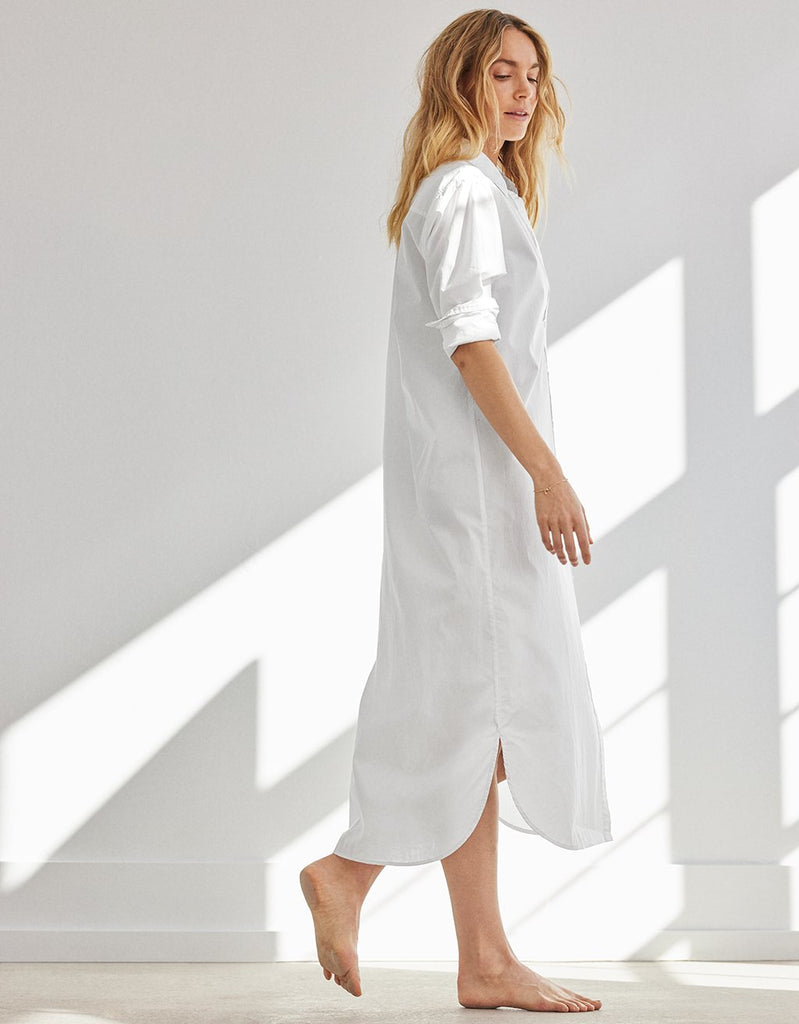 our comfortable take on tailoring. inspired by the classics, this cotton shirt dress intertwines menswear details with a feminine fit for a look that knows no limits.