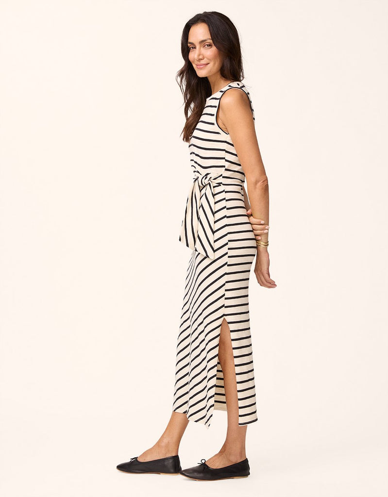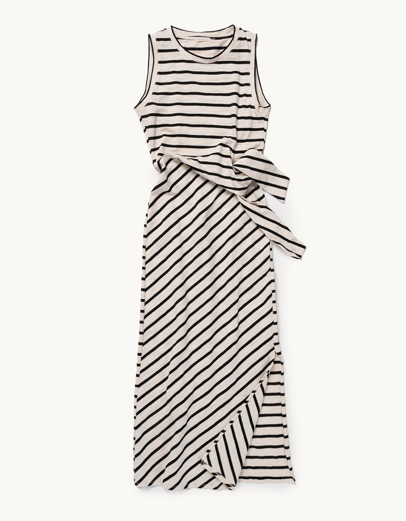 take it easy in this cotton tank dress. crafted from recycled fabric, we designed this pull-on style with stripes that remind us of seaside summers. the side-knot gives it a distinctive finish.