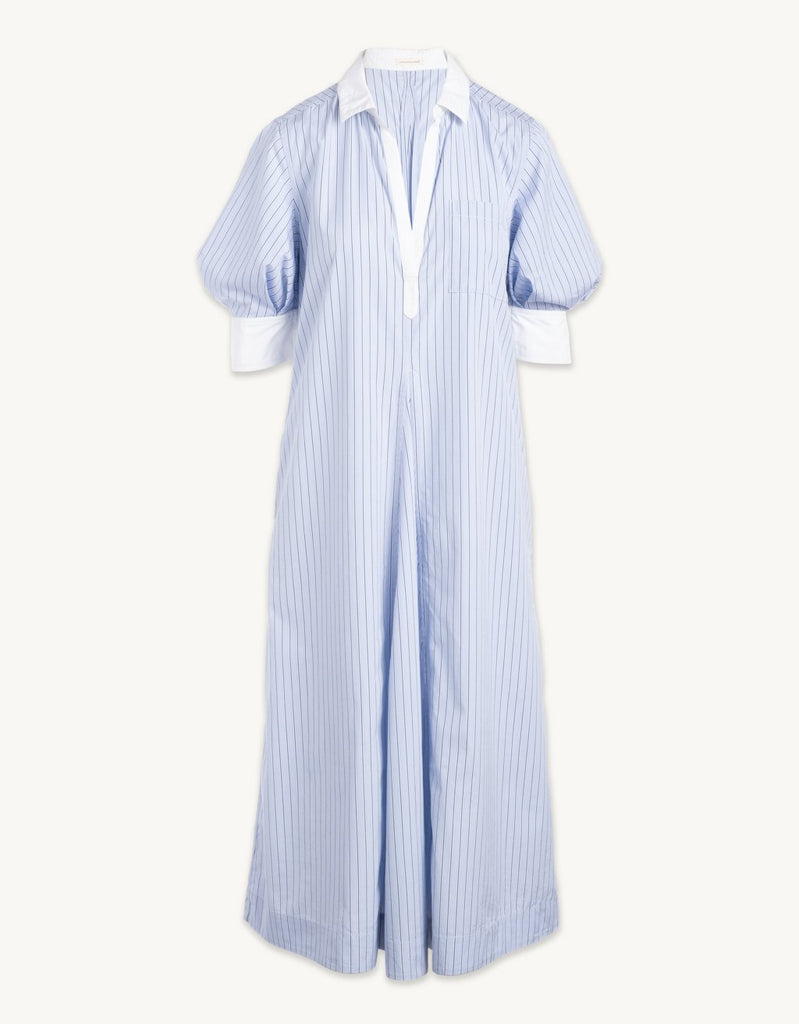 this dress is a modern take on a closet staple. we designed it from striped italian cotton and gave it slightly puffed sleeves for a touch of volume.