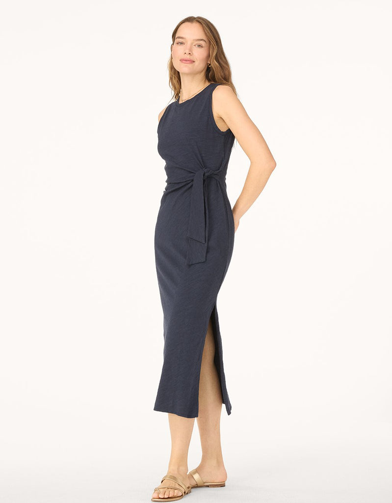 take it easy in this cotton tank dress. crafted from organic fabric, we designed this pull-on style with a side-knot for a nod to nautical detailing.