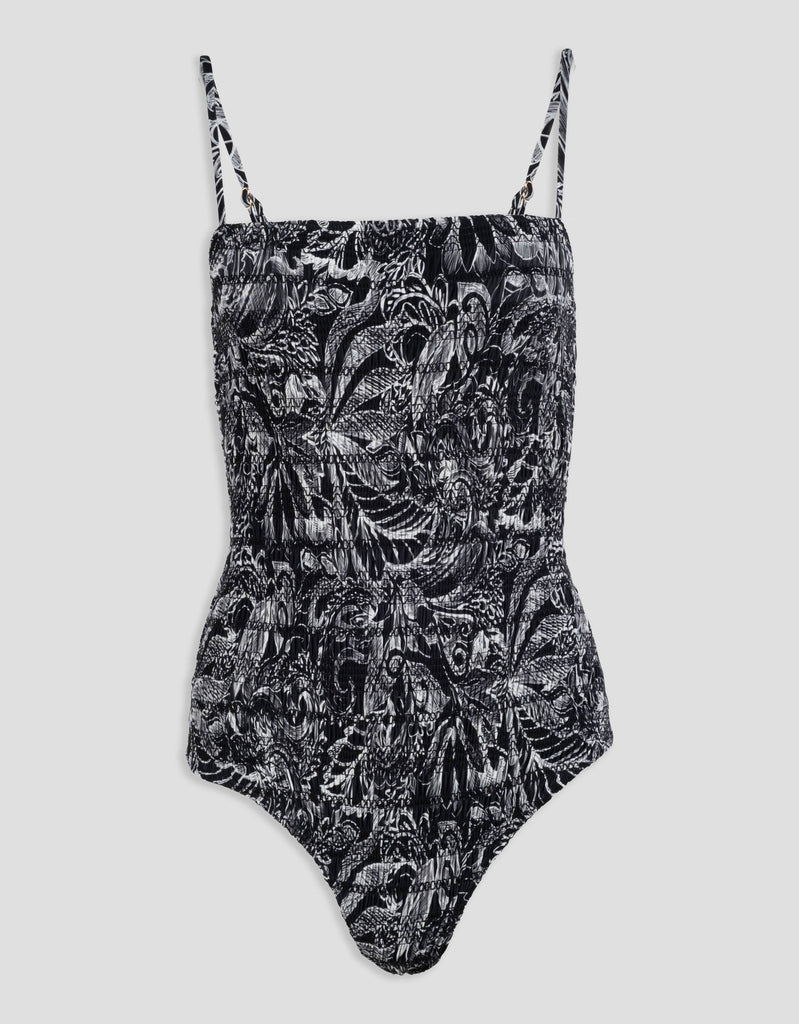 a classic one-piece made for endless days in the sun. made from our signature recycled nylon, it has a smocked texture for a modern twist.