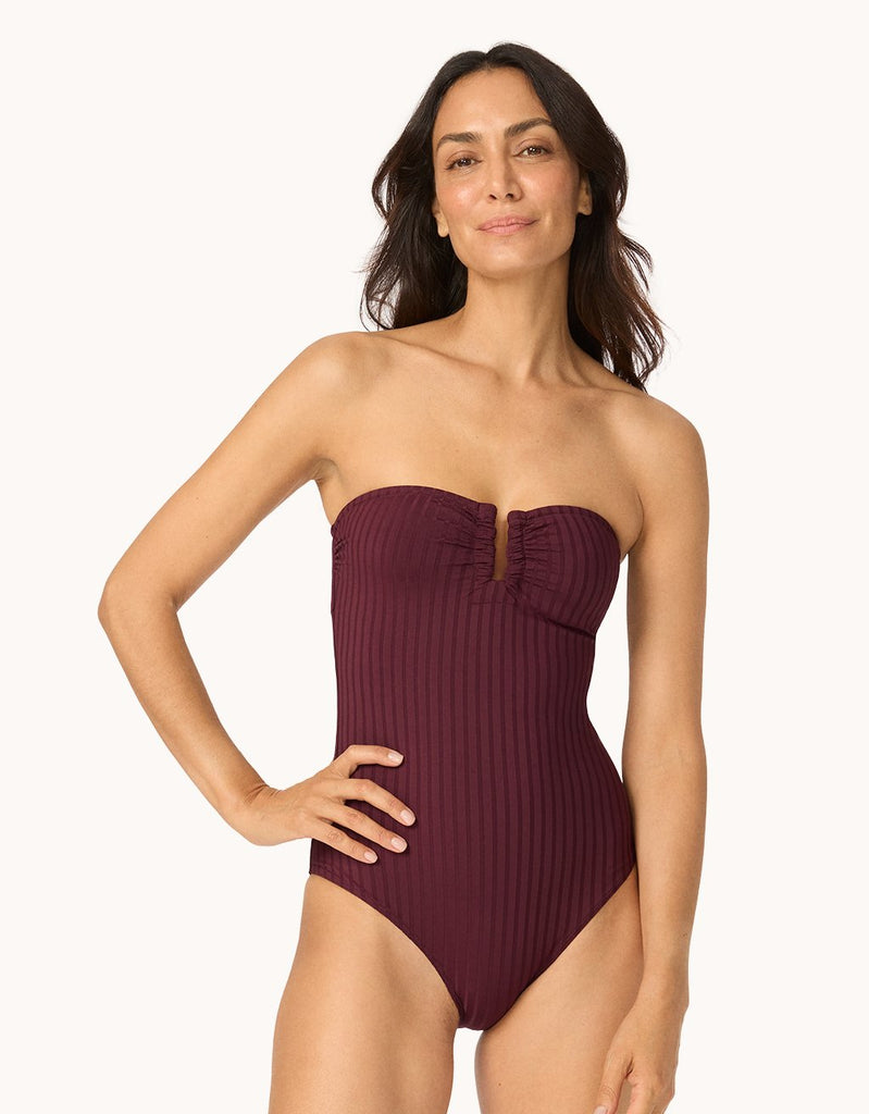 Effortless elegance for every beachy day. We designed this swimsuit in a flat, wide rib and elevated it with a hardware accent for a sleek finish.