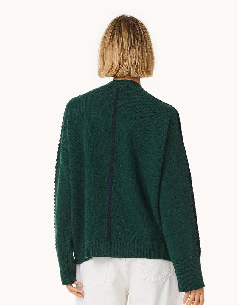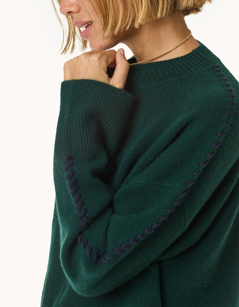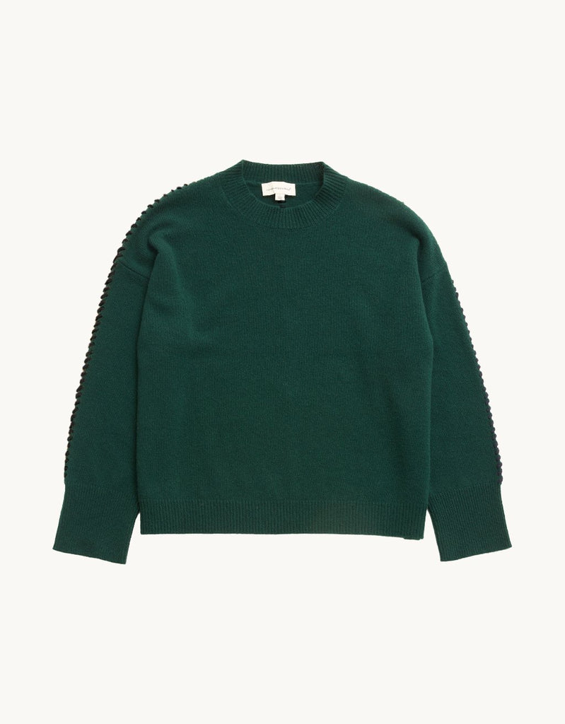 An effortless feel with a modern design. This sweater is knitted from our iconic cashmere with whipstitch detailing down the sleeves. The collar, cuffs, and hem are ribbed.