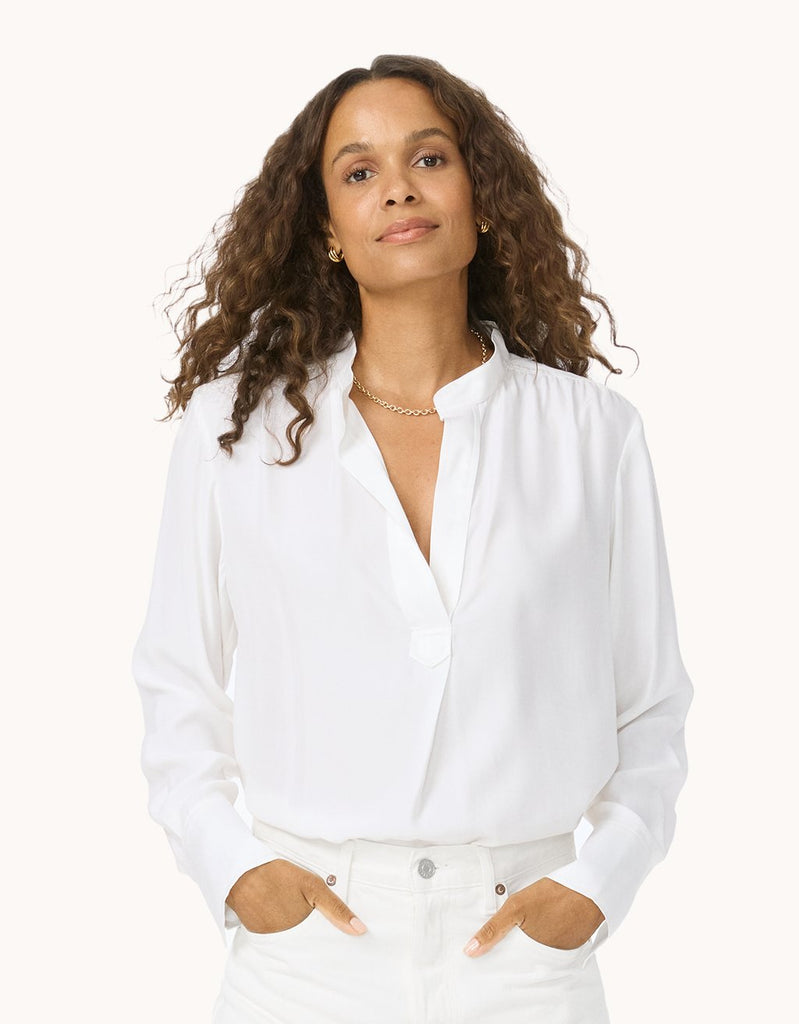 Each shirt is defined by relaxed tailoring, elevated texture, and thoughtful detailing. From crisp button-downs to softly draped silhouettes, each style transitions seamlessly from work to weekend. Layer with outerwear or under a comfortable sweater to create effortless, year-round looks.