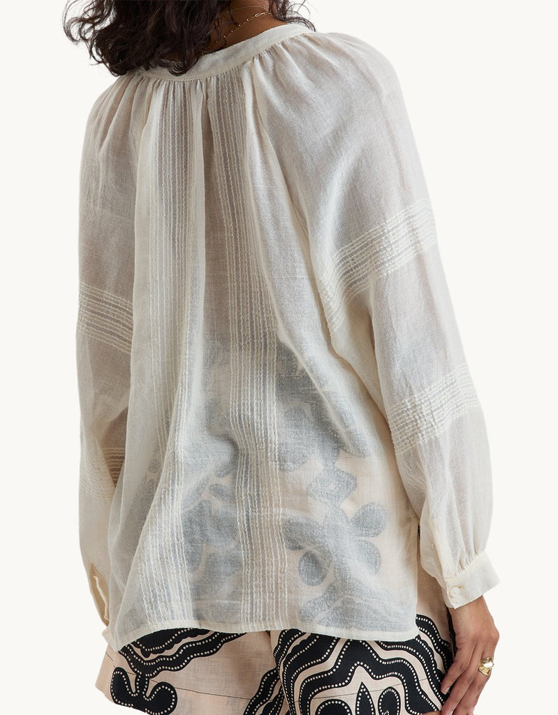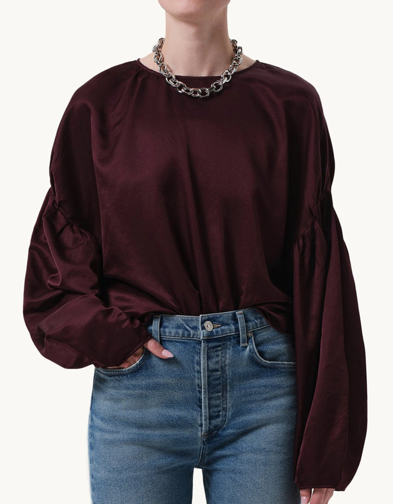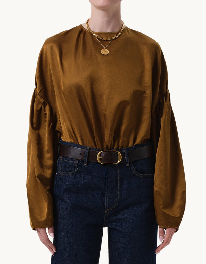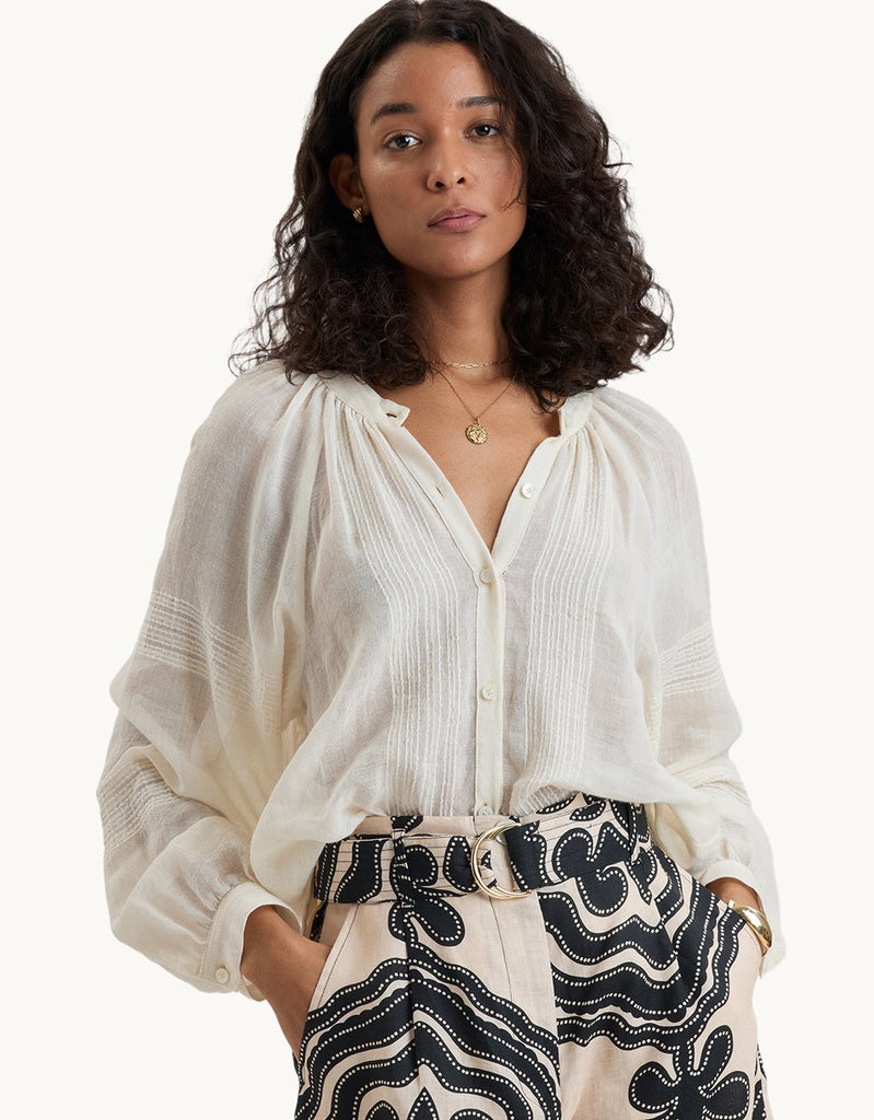 Designed with graceful movement and subtle refinement, each blouse brings softness to structured dressing. Gentle drapes and light sheen add depth to everyday outfits—perfect tucked into wide-leg pants or styled with denim for relaxed sophistication. Every detail reflects quiet luxury and timeless design.