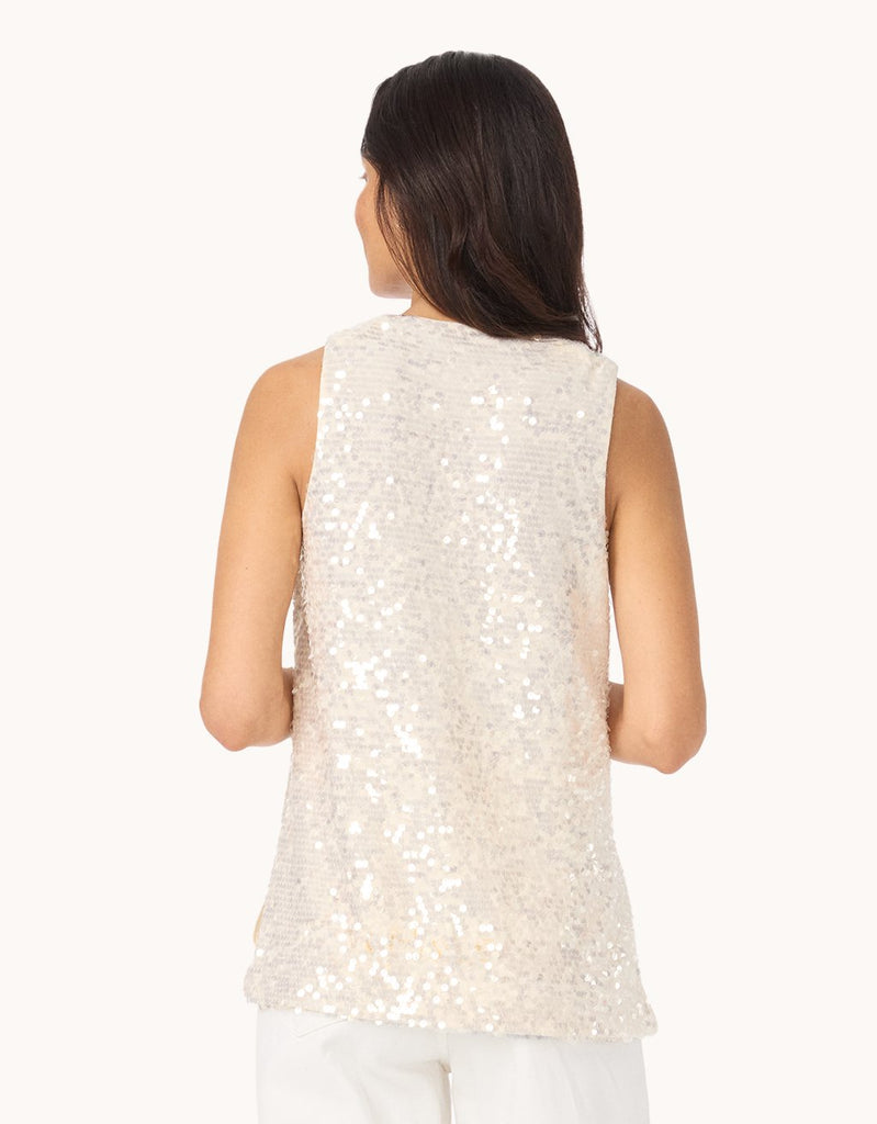 A modern classic, this scoopneck tank is designed with a sequin finish for a shimmering look. It's backed with soft jersey fabric for a comfortable feel, as well as a regular fit that's easy to style.