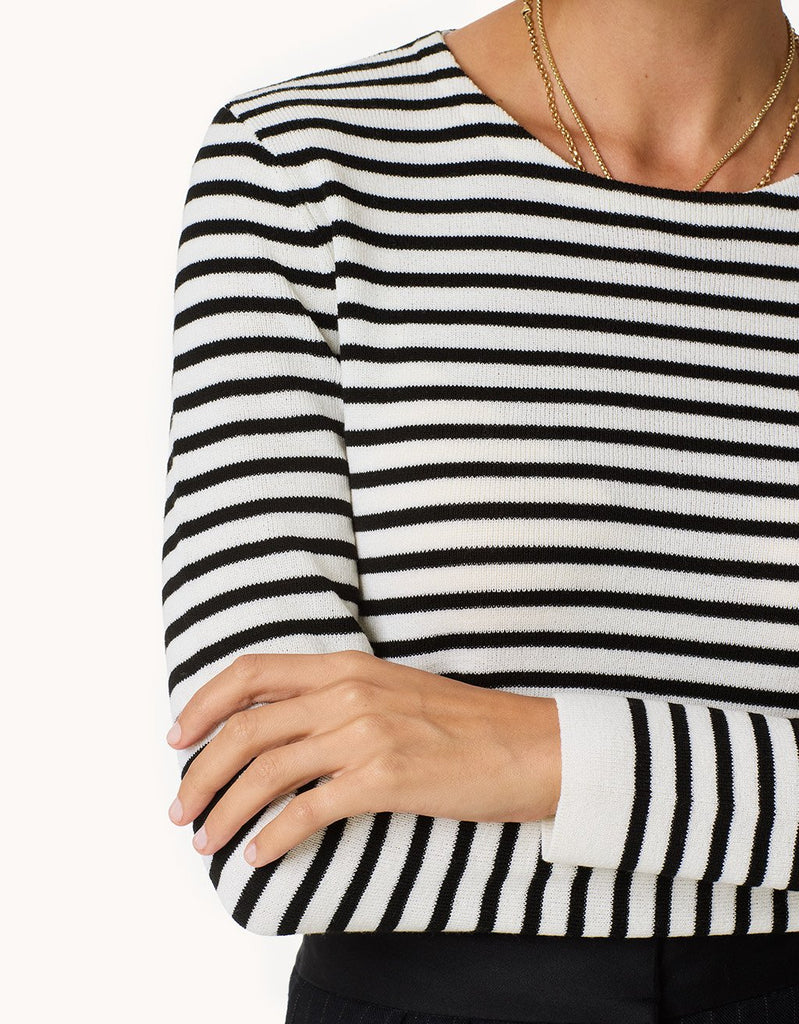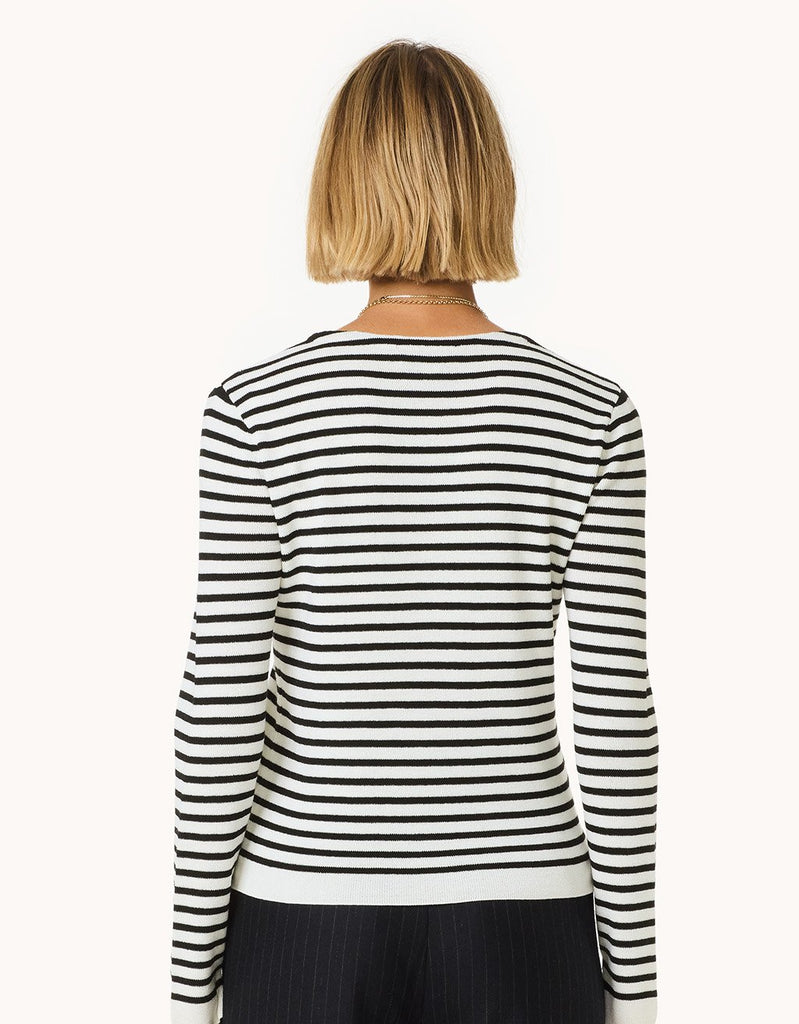 A modern staple you'll time and again. Knitted from ultra-soft wool, this sweater lends itself to effortless layering. We designed in in black and white stripes for a versatile look.