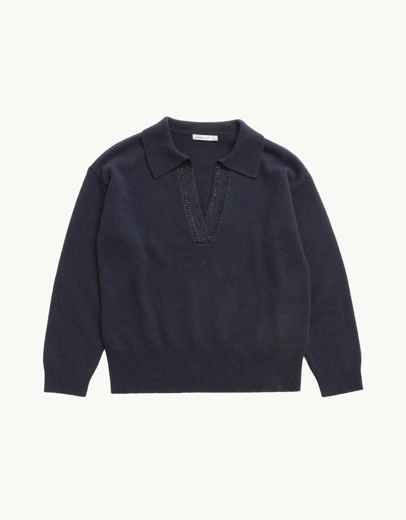 A fresh take on the quintessential polo. This cashmere sweater is luxuriously soft with an easy fit. We designed it with jewel detailing on the placket for a twist of shimmer.