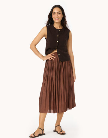 A skirt that's ready for anything. Made from recycled fabric with a hint of shine, it's finished with crinkle pleats and a raw, laser-cut hem for a natural look. You'll love the elastic waistband.